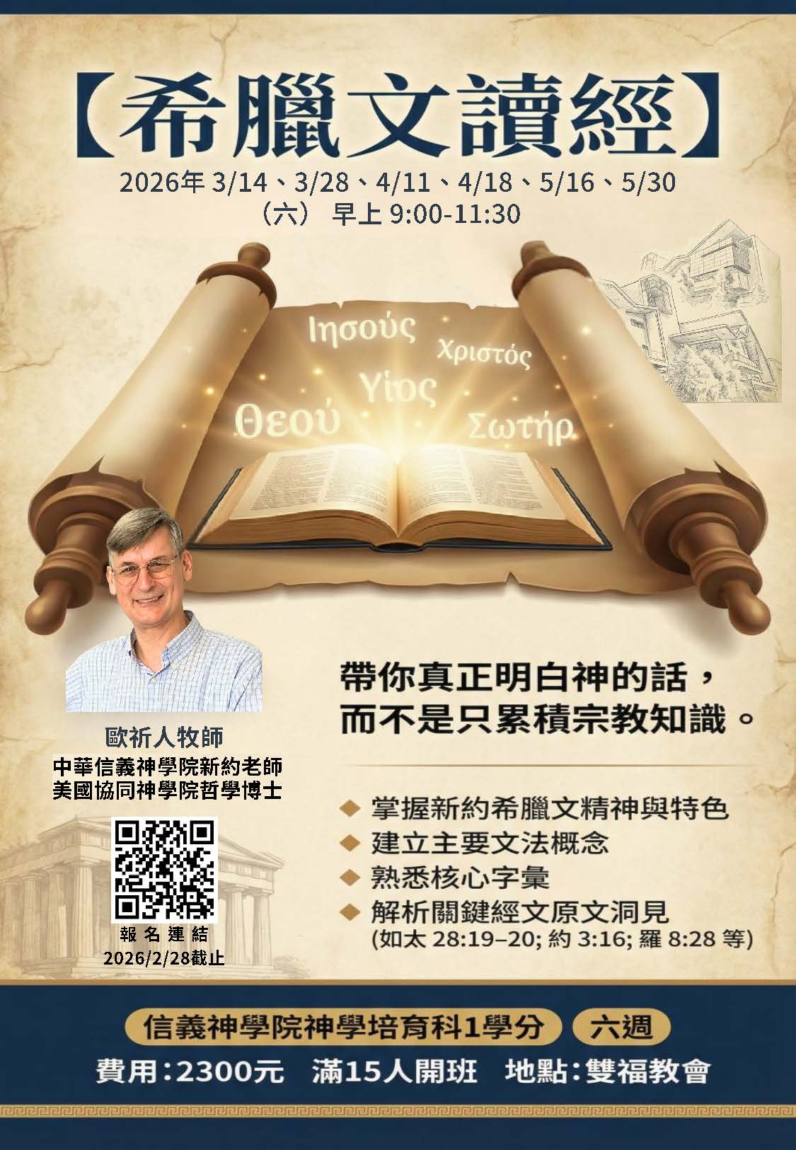 (具大專/大學畢業學位者免筆試入學,信徒基礎培育科學友需通過線上測驗)